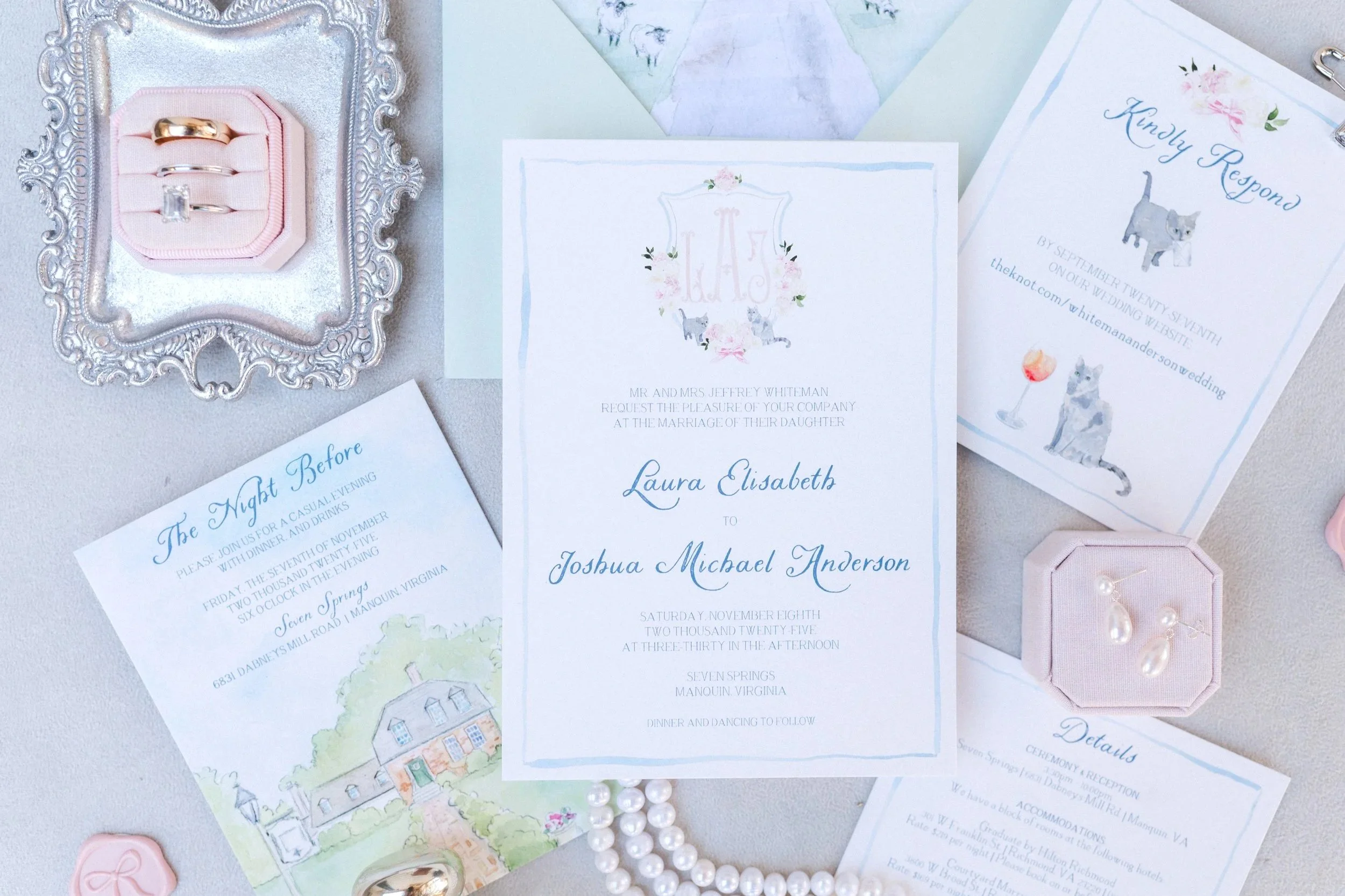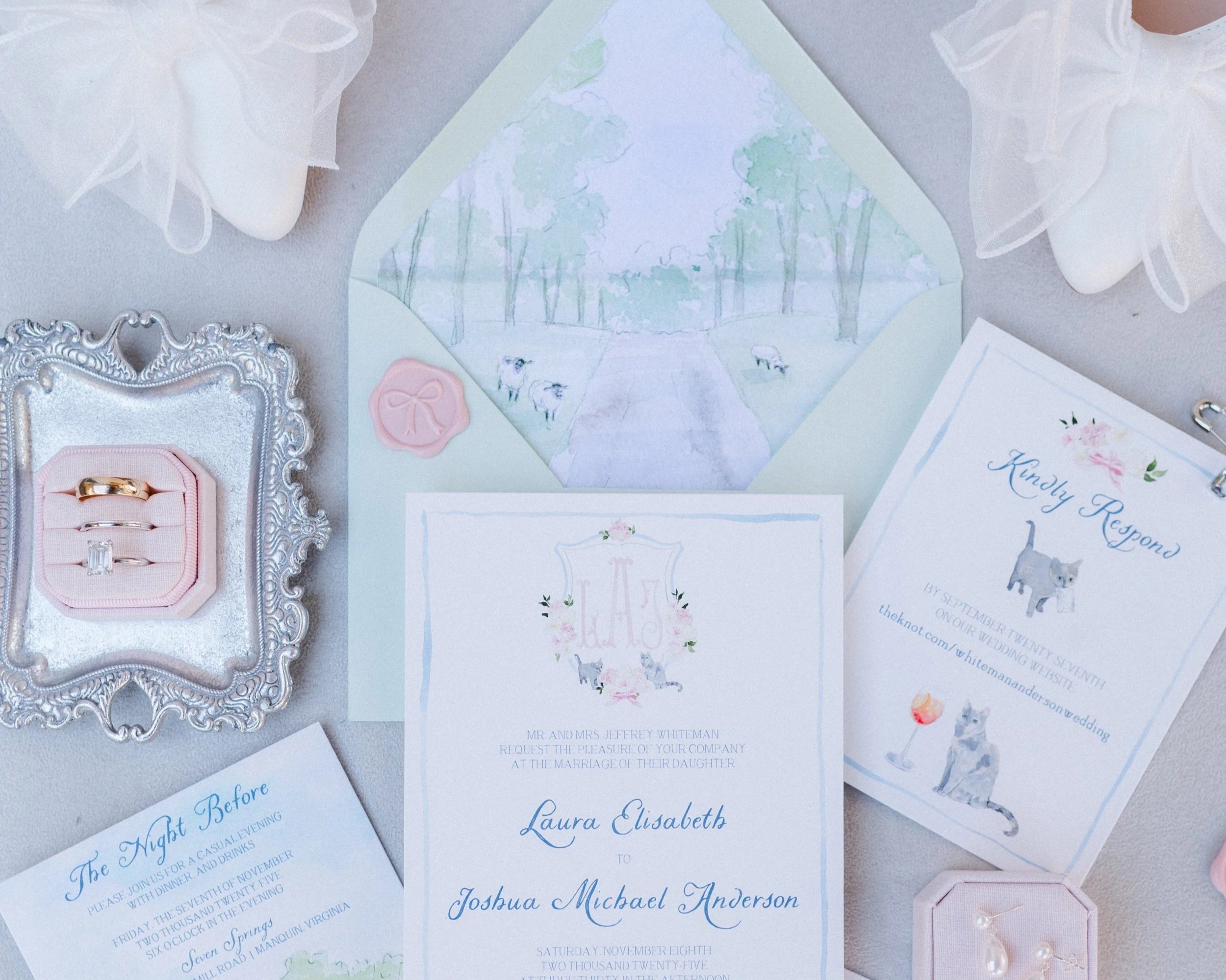 “Working with Meagan and Tying the Knots was one of the better parts of wedding planning! Meagan was attentive to every little detail and overall such a joy to work with. My fiancé and I were blown away by how stunning our invitations and day of paper turned out, and we received so many compliments from our guests. If you’re thinking about investing in beautiful wedding paper, please go with Tying the Knots. My fiancé and I can’t recommend Meagan enough! Thank you so much again for bringing our vision to life in all of our wedding paper!.”