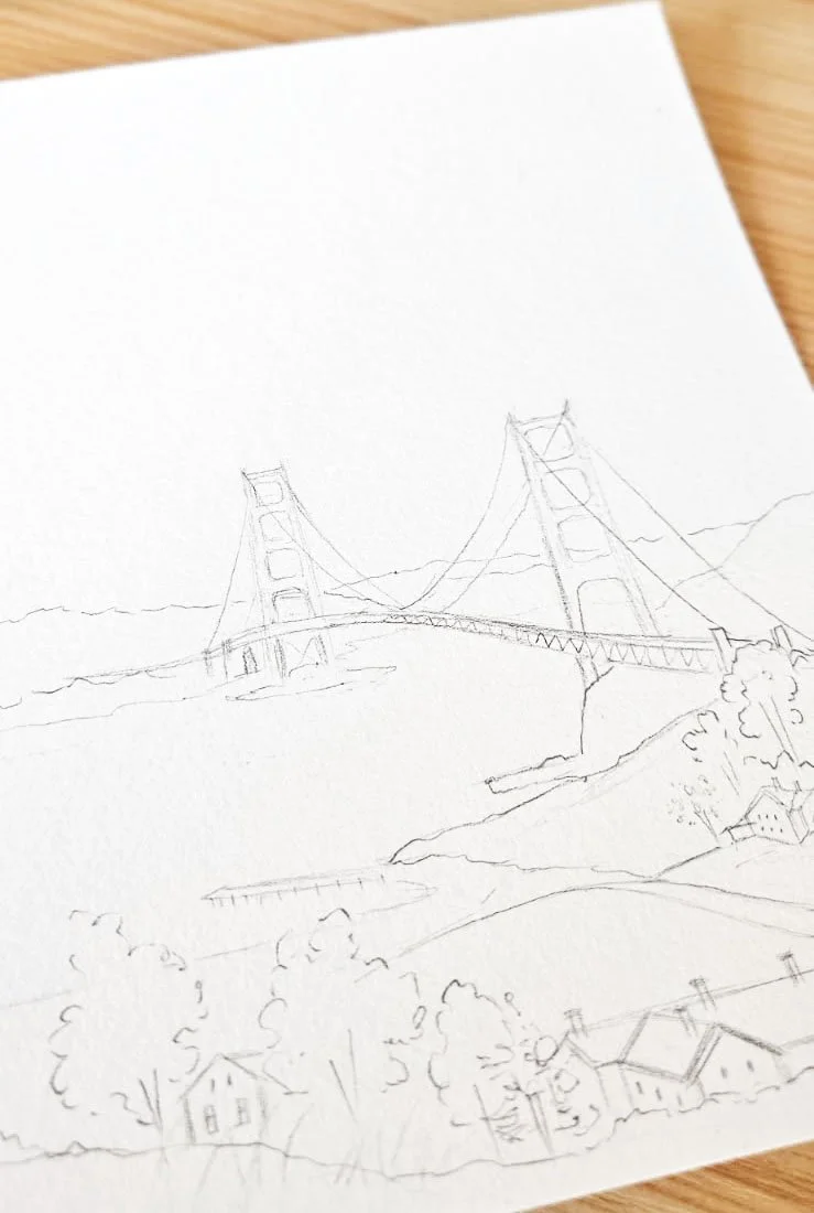 Once the sketch is completed, we add your preliminary text. We make any necessary revisions and then add the watercolors ranging from light to vibrant.